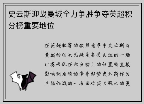 本文围绕女王巡游者迎战西布朗一役展开,着重分析这场英冠联赛中两队的表现、战术安排及其对积分榜的影响。文章首先从比赛的重要性入手,指出两支球队在争夺升班名额过程中的紧迫感。接着,从双方的历史交锋记录、近期状态、战术布置及球员表现等方面进行详细阐述,力求展现出这场精彩对决背后的深层次因素。最后,通过总结归纳,强调了比赛结果对于两支球队未来赛季前景的重要性,为读者提供全面而深入的理解。 1、比赛的重要...