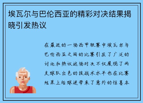 在近期的比赛中,巴伊亚与强队之间的对决成为了球迷们热议的话题。本文将对这场精彩绝伦的比赛进行全面回顾,并从战术分析、球员表现、比赛关键时刻以及赛后影响等四个方面进行深入探讨。通过这些分析,我们不仅能够更清晰地理解比赛的进程,也能对未来的赛事发展做出预测。此外,本文还将总结巴伊亚在面对强者时所展现出的精神和实力,为读者呈现一幅生动而全面的篮球画卷。 1、战术布局与执行 在此次对决中,双方教练在战术...
